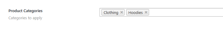 The list of categories available for delivery, all settings will be applied only for these product categories