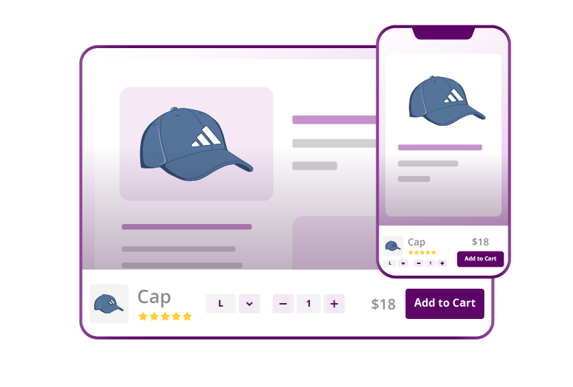 Enable customers to select product variations directly from the sticky bar. A dropdown menu displays all available options, and the price updates instantly when a variation is chosen, ensuring a smooth and intuitive experience.