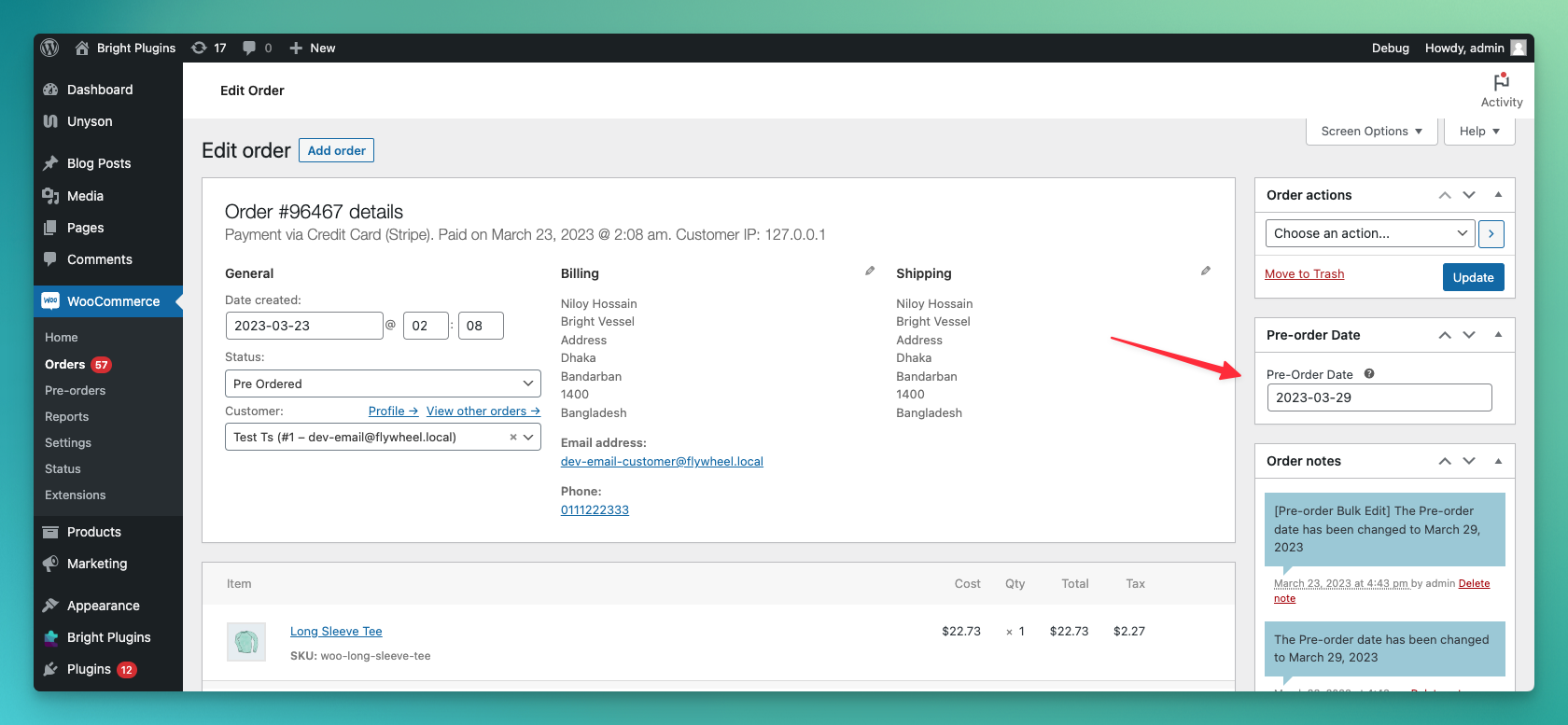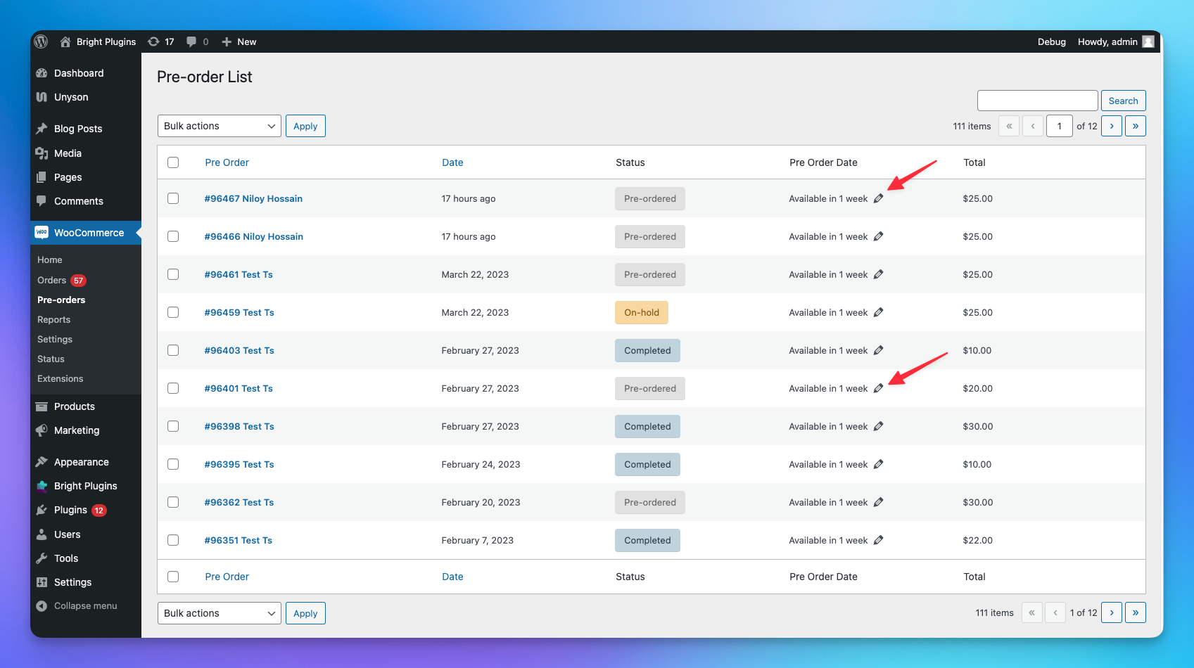 This WooCommerce Pre-order feature allows store admins to adjust the product presale date from the order backend. Admin can also update multiple pre-order dates using the bulk edit feature